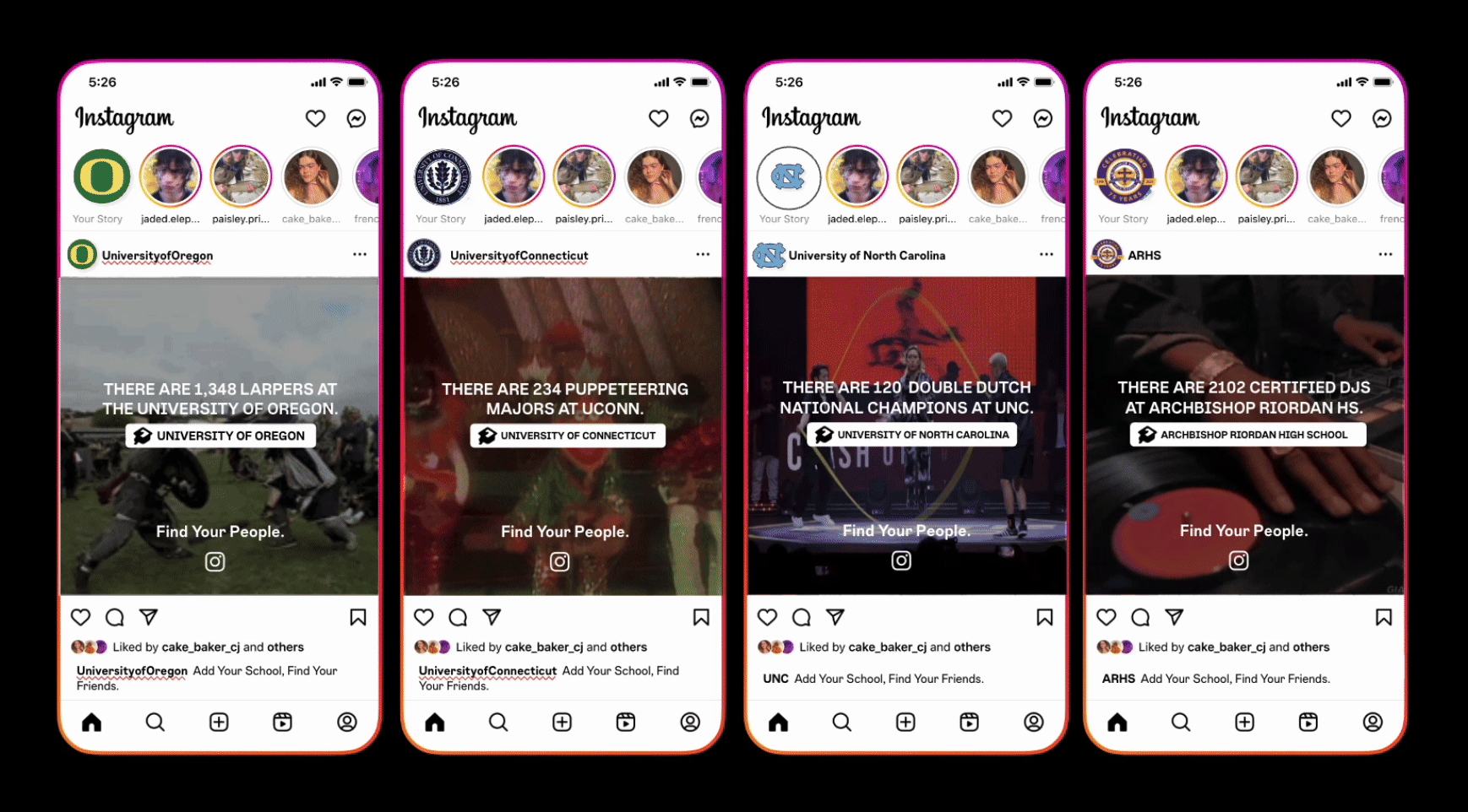 We wanted to show that wether you are into your school’s most niche group or your school’s most stereotypical group, Instagram Add Your School helps you find your people.